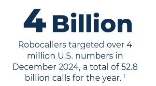 - Source: YouMail Robocall Index. “U.S. Consumers Received Nearly 4.4 Billion Robocalls in December, 52.8 Billion in All of 2024.” PR Newswire, January 13, 2025. Link.
